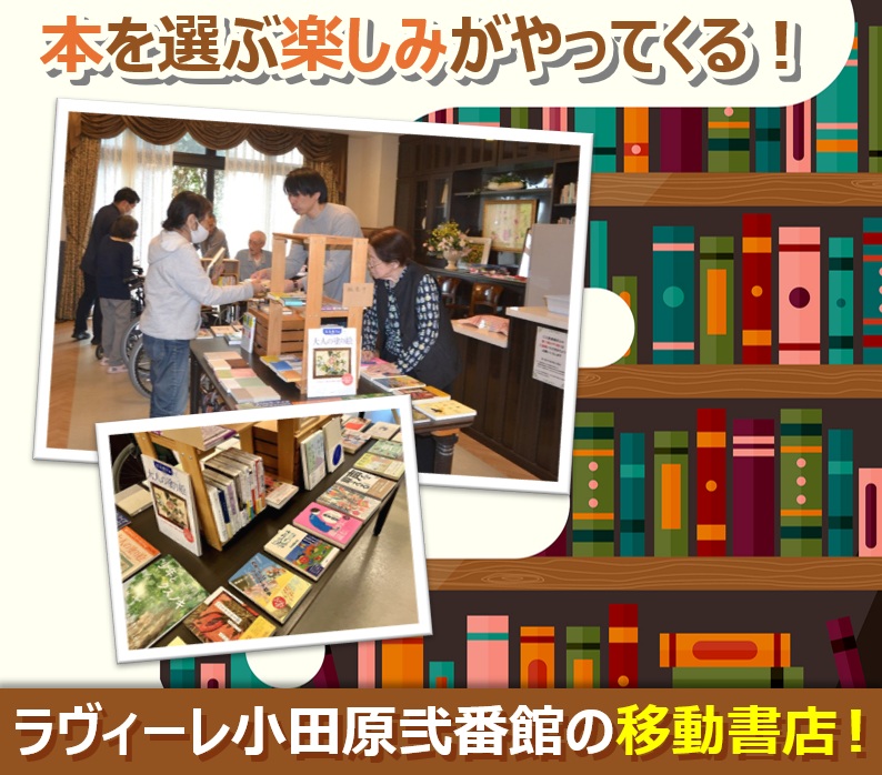 2026年4月 NEW イベント 2026.04.01 本を選ぶ楽しみがやってくる!――ラヴィーレ小田原弐番館の移動書店 ラヴィーレ小田原弐番館では、数か月に一度、道草書店による移動書店が開かれています。ロビーに本が並ぶその日は、ご入居者さまが一冊一冊を手に取りなが・・・ ラヴィーレホームの取組み職員の想いウェルビーイングSOMPOケアの想い 3 9 view 1 / 11