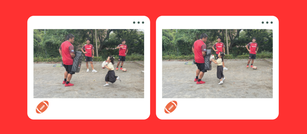 今回は「パス」「タックル」「ラインアウト」の3つを体験しました。