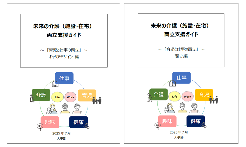 特に、SOMPOケアが進める「未来の介護」と職員の「育児」を両立するための『未来の介護 両立支援ガイド』には、スタッフ本人だけでなく、ホーム長・管理者をサポートする考え方や情報などがまとめられています。