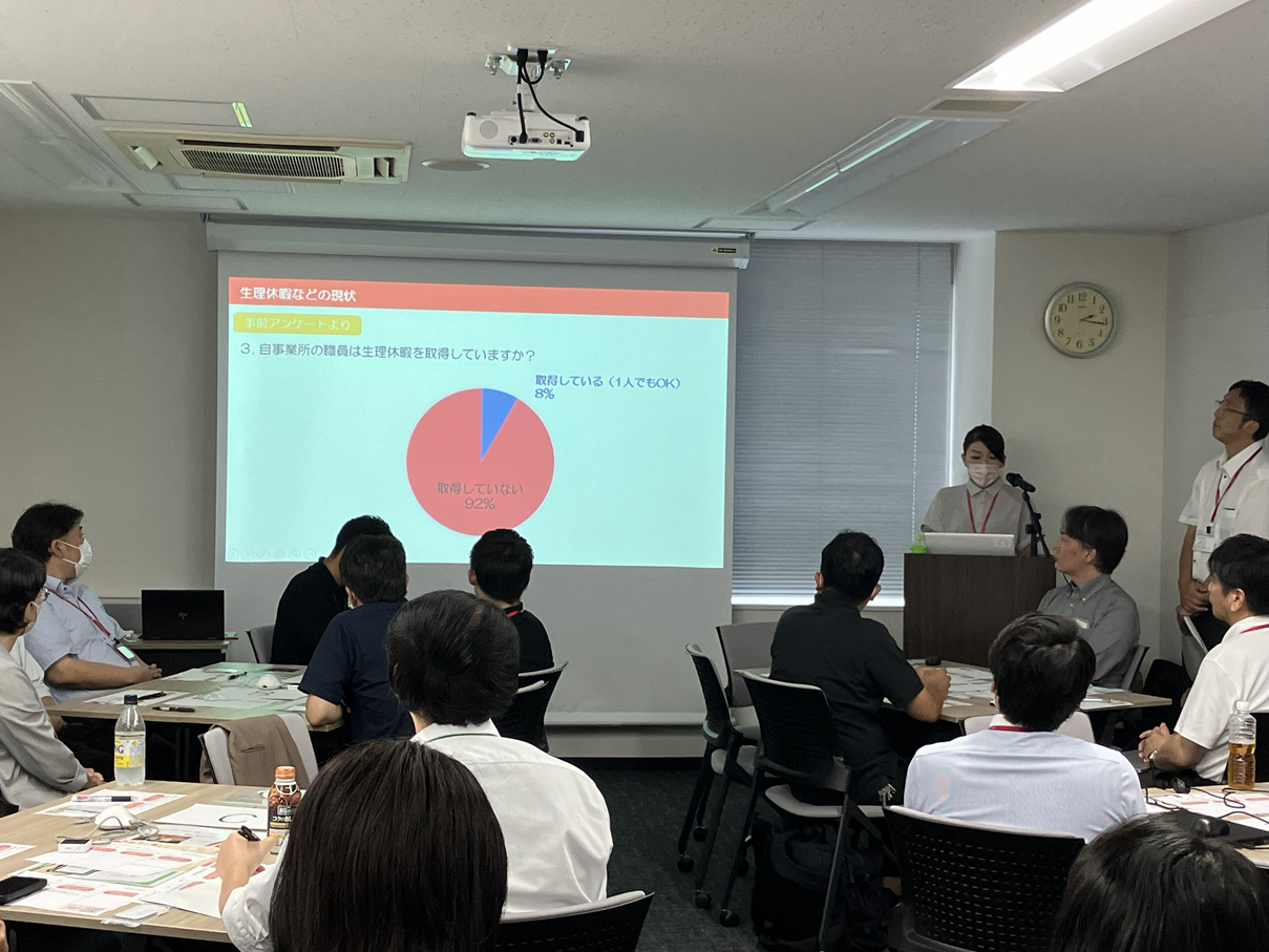 生理痛体験後のグループワークでは、「誰もが働きやすい職場のあり方」について活発な議論が交わされました。