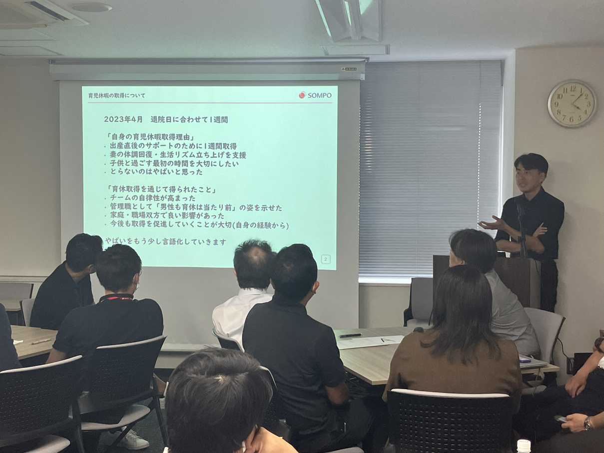 議論は、「なぜ育休が必要なのか」という本質的なテーマにも及び、「少子高齢化が進む中、子育てを女性だけに任せていては、社会は立ち行かない。これはSOMPOケアだけでなく、社会全体で取り組むべき課題だ」という力強い意見も出てきました。