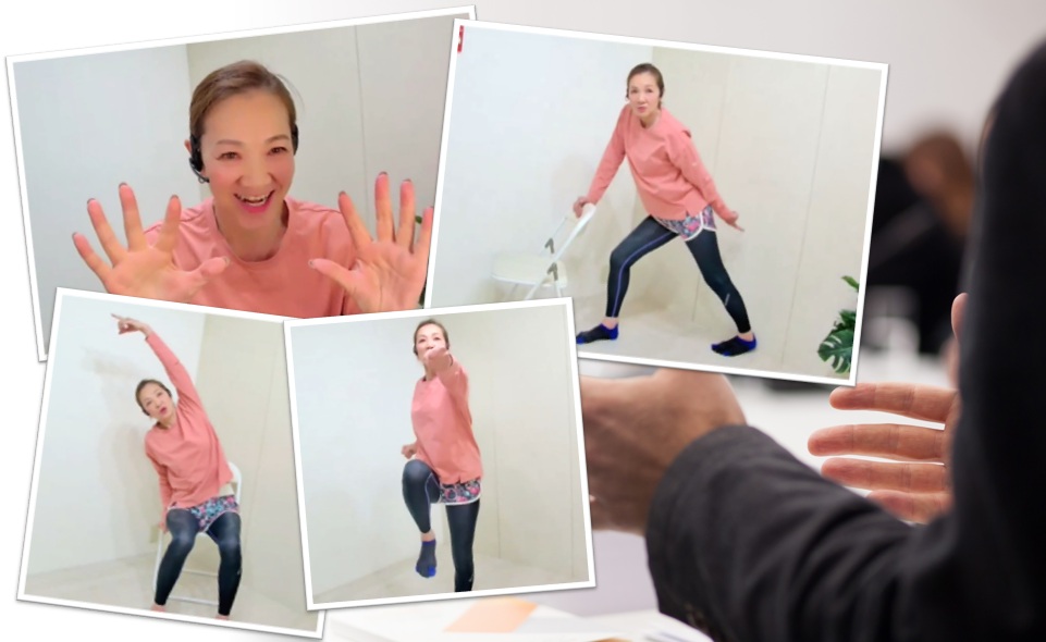 後半は、当社で地域版SSAPを担当しているインストラクター・村上理香(むらかみ りか)さんが登場し、脳のトレーニングやストレッチなどの有酸素運動体験プログラムを実施しました。