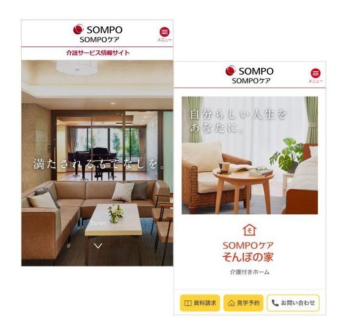 SOMPOケアのホームブランドの紹介ページも洗練されたデザインへとリニューアルされました。
