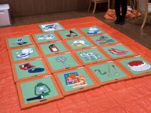 今回、子ども食堂の企画で、損害保険ジャパンが提供する防災プログラム「学防ッチャ(まなぼっちゃ)」を開催しました。 このプログラムは、パラリンピック競技の「ボッチャ」からヒントを得たもので、誰もがゲーム感覚で防災を学べます。 避難生活に役立つアイテムが描かれた的にボールを投げることで、遊びながら楽しく知識を身につけることができます。