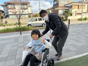 きっかけは、そんぽの家S京都東向日が開催するSOMPO流 子ども食堂に、京都市で地域の文化や食を五感で体験する活動を行う民間団体「五感プロジェクト」さまをお招きしたことでした。このときのご縁から逆オファーをいただき、「五感プロジェクト」の一環である、今回の「なないろ子供フェスタ」参加へとつながりました。当日は、京都山城訪問看護の大江さん(管理者)、京都福祉用具の中西さん(管理者)が協力。「看護師体験」と「車椅子体験」を実施し、多くの子どもたちが目を輝かせながら参加してくれました。