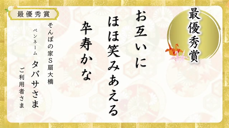 今回で9回目を迎える「SOMPOケア ライフストーリー川柳」。2026年1月9日に行われた表彰式は、全国にあるSOMPOケアのホームや事業所にオンラインで同時配信!