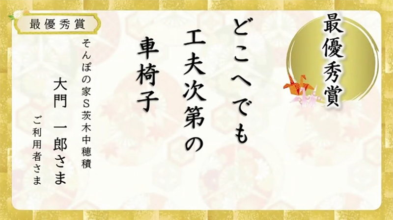 「実際に工夫しながら車椅子でいろんなところに出かけています。大阪や京都にも行きました。特に京都が好きで、行くたびに新しい発見があります。これからも外で見た景色や出会った人との思い出を、また五・七・五にしてみたいと思っています。」