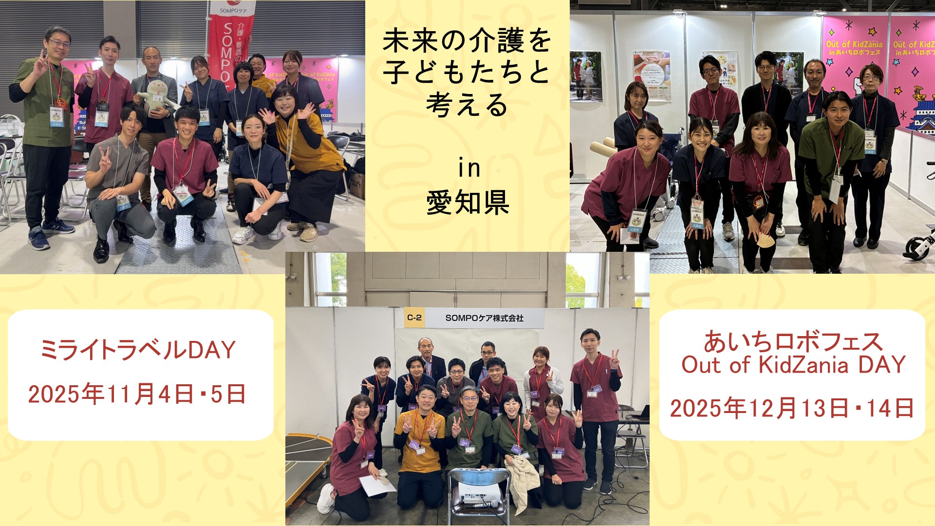 当社では、次世代を担う子どもたちに、介護の仕事の魅力や未来の可能性を伝えるため、地域の教育イベントへ積極的に参加しています。 今回は、2025年の秋から冬にかけて愛知県内で開催された2つのイベント、「ミライトラベルDAY(ミラトラ)」と「あいちロボフェス Out of KidZania」の様子をまとめてレポートします!