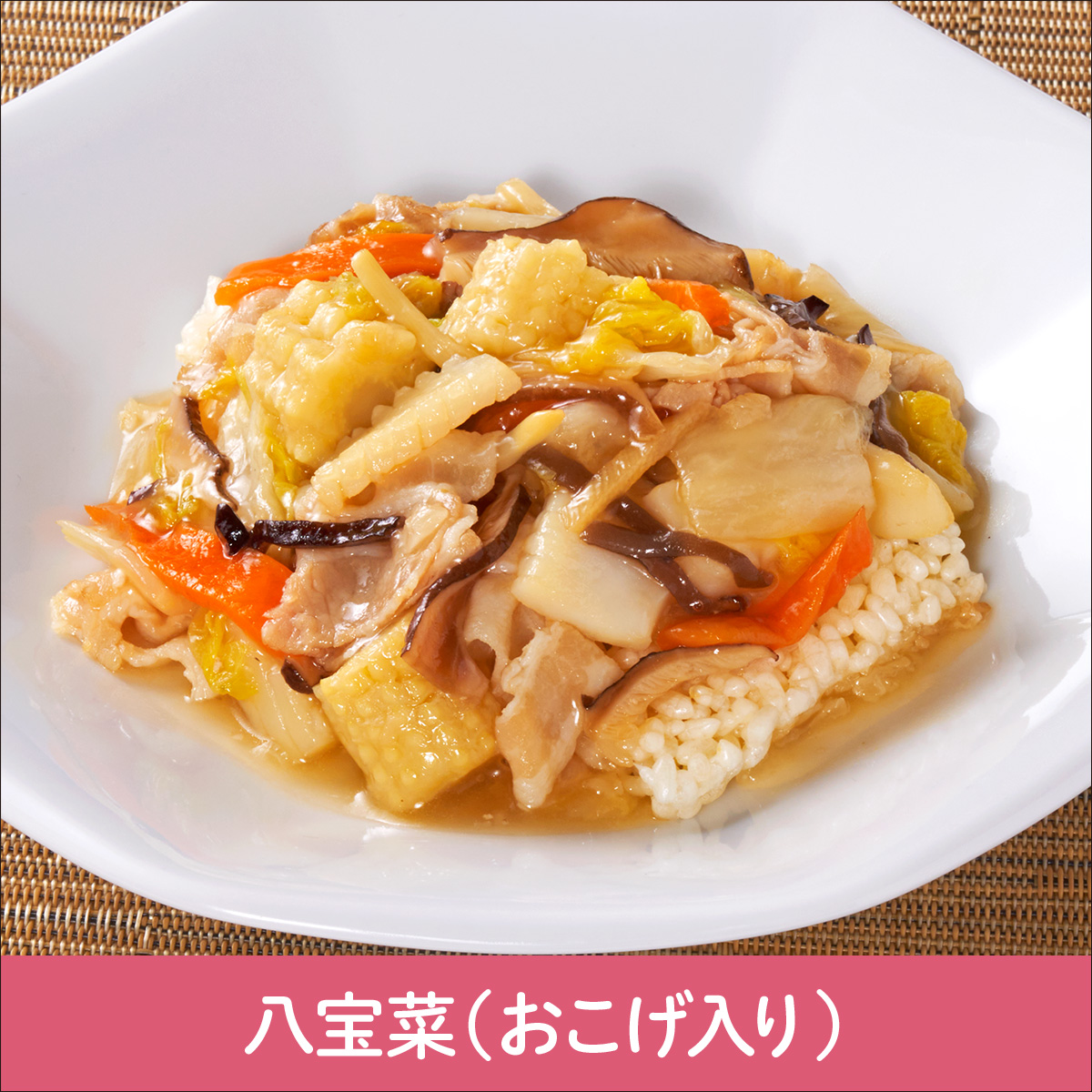 入賞した「八宝菜(おこげ入り)」は、かりかりに揚げたおこげの上に、たっぷりの魚介と野菜のあんかけをかけ、おこげの「もちもち食感」も楽しめる一皿です。