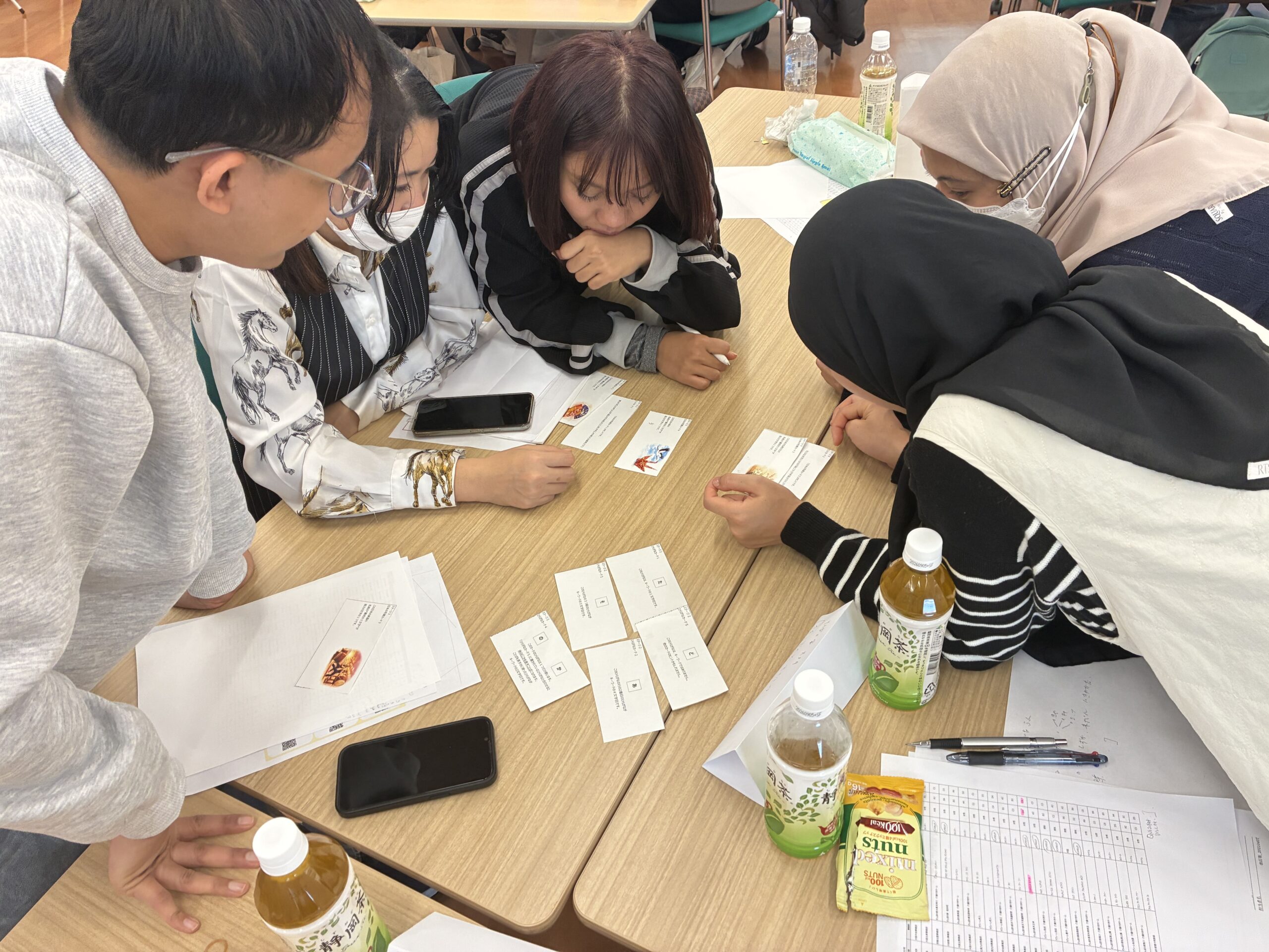 ミニゲームでは、「ブラインドドローイング」を実施。日本語やジェスチャーを使って、何が描かれているかを共有することにチャレンジしました。正解が「扇子」なのに「うちわ」と答えたり、「鶴」なのに「折り鶴」と答えたりするなど、似た言葉の違いに苦戦し、正解にたどり着けない場面も多く見られました。
