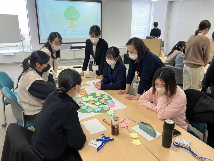 この取組みは、今年度から神奈川静岡本部で始まりました。新卒スタッフ同士の交流を促し、仕事へのモチベーション向上につなげることが目的です。年に2回開催され、上期と下期で異なるテーマに取り組みます。