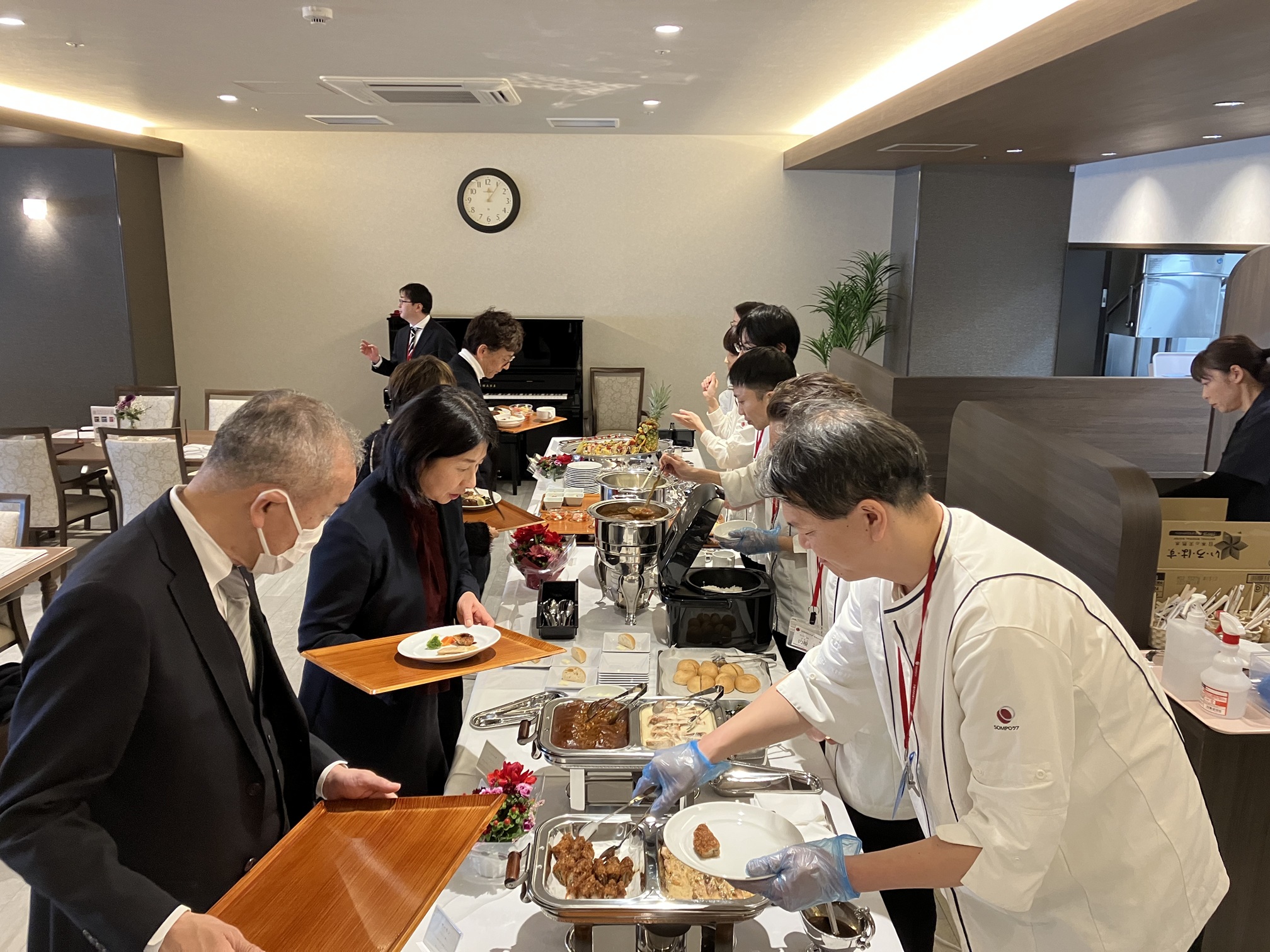 当日は、SSAP体験、お食事 、施設 見学、個別相談を実施。また、今回のお食事体験では、ホームで提供されている食事の雰囲気をより身近に感じていただけるよう、ビュッフェ形式でご用意。