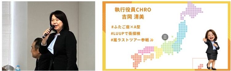 役員紹介はAIで制作した役員のアバターとハッシュタグを投影。