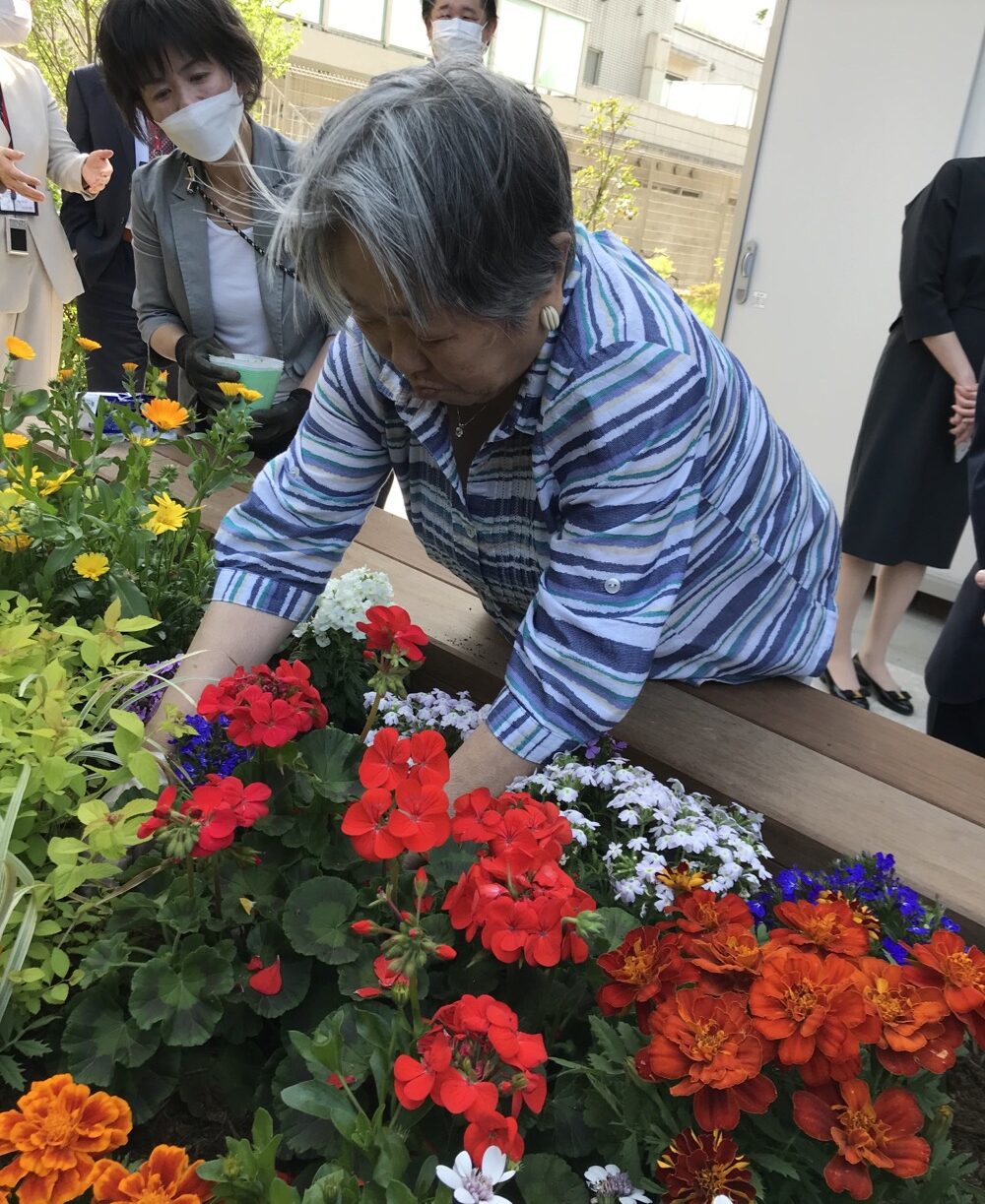 「お花を見ているだけで明るい気持ちになれるわね。本当にきれい」と植栽を楽しまれたご様子。