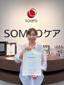 はじめは臨床分野の難しさに自信を失うことも多かったです。そんな中、ご指導くださった杉山先生(SOMPOケアの栄養顧問)や麻植さん(SCF栄養管理部長)、伴走してくださった先輩方、そして共に切磋琢磨した桒子さんの支えもあり、無事に合格することができました。心から感謝の気持ちで一杯です。