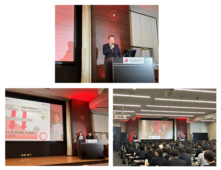 この日のために役員や部長のほか、ホーム長や管理者、そしてSOMPOケアフーズやNDソフトウェアの皆さんが全国から集まり、広い会場がほとんど空きがないほど埋まっていました。