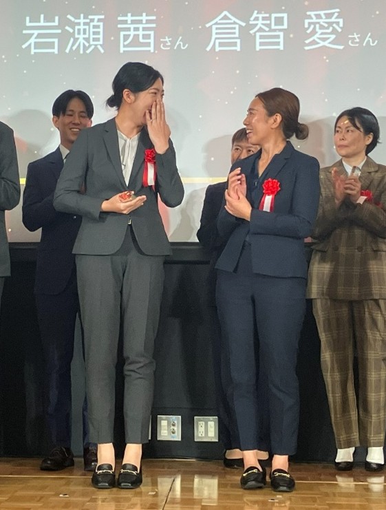 グランプリが発表された瞬間の岩瀬さん(左)と倉智さん(右)