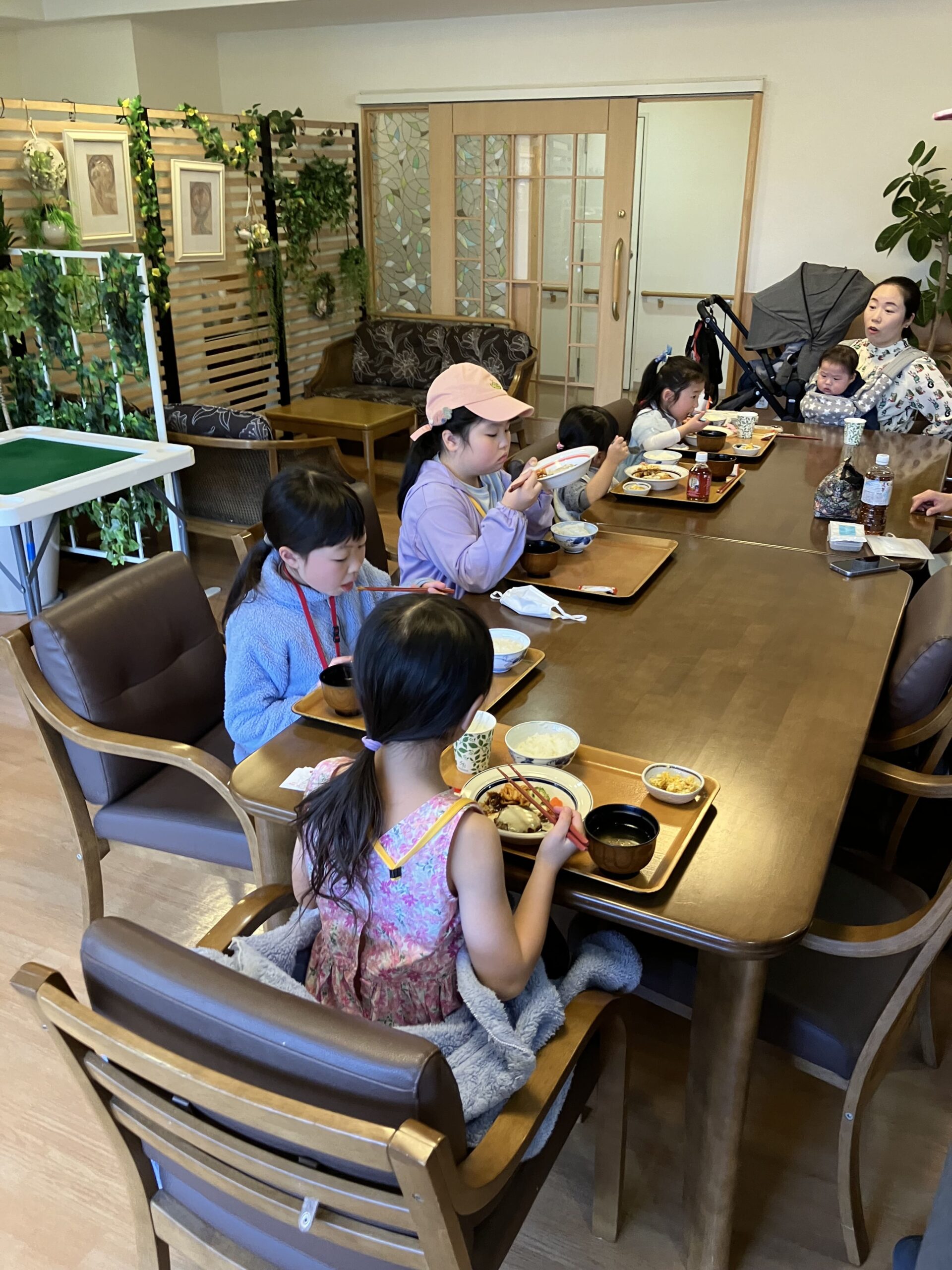 子どもたちは、お手伝い終了後皆で食卓を囲み、ご利用者さまと同じ温かい食事をいただきました。