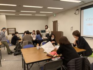参加者がお勧めの本を紹介し合い、その魅力をプレゼンテーションするユニークなプログラムです。自分の考えを「言葉で伝える」練習を行いました。