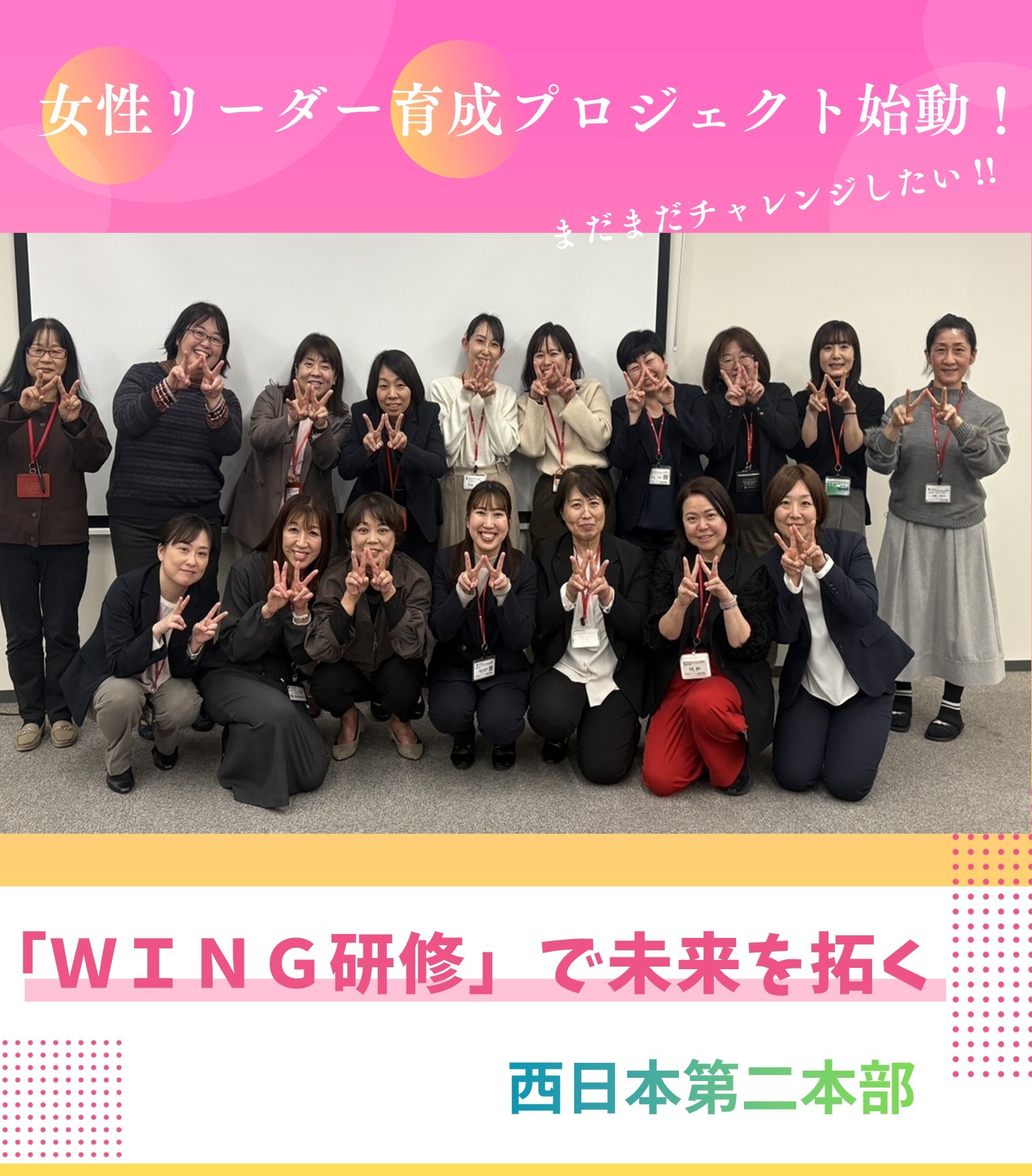 西日本第二本部では、未来の組織を牽引する女性リーダーの育成を目指し、昨年7月から今年1月にかけて、新たなリーダーシップ研修「WING研修」が開催されました!