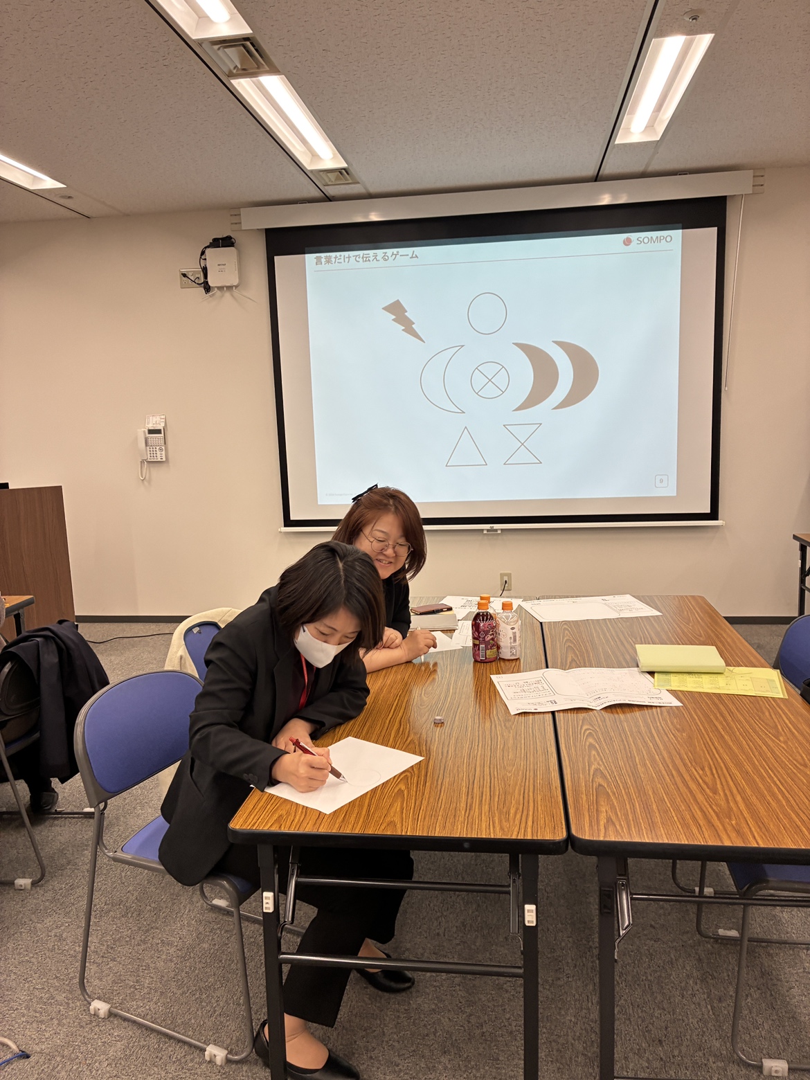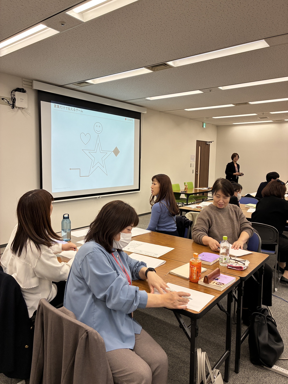 「言葉だけで伝えるゲーム」では、図形を言葉だけで正確に伝える難しさを体験し、伝達の奥深さを実感しました。