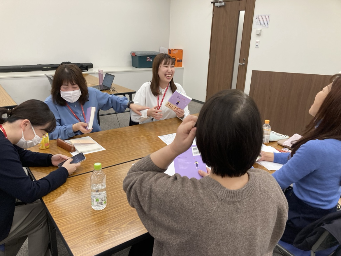 参加者がお勧めの本を紹介し合い、その魅力をプレゼンテーションするユニークなプログラムです。自分の考えを「言葉で伝える」練習を行いました。