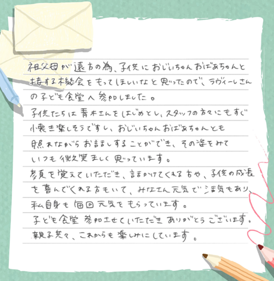 🗣️ お母さまからはお手紙をいただきました