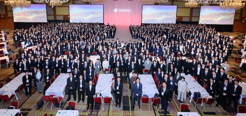 4月2日、グローバルに広がるSOMPOの事業規模やパーパスを肌で感じ、同期としての繋がりを深めることを目的として、SOMPOグループ合同の入社式が開催されました。