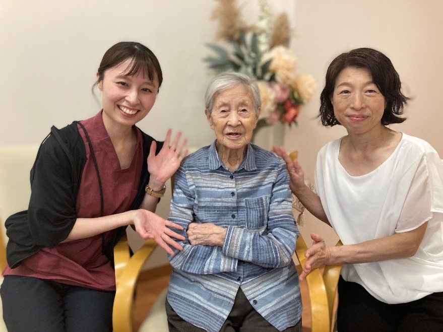 杉山さまと初めてお会いしたのは、私がケアスタッフとして入社した2012年のことでした。早朝、外で太極拳のポーズをとり体操をされる格好良い姿が、今も強く印象に残っております。日々接する中で、杉山さまの明るさ、穏やかさ、そして芯の強さに触れ、私自身も多くのことを学ばせていただいております。103歳という長い年月を凛として歩んでこられたお姿に、心から敬意を表します。