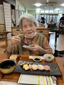 楽しみにされていたお寿司を召し上がる三好さま