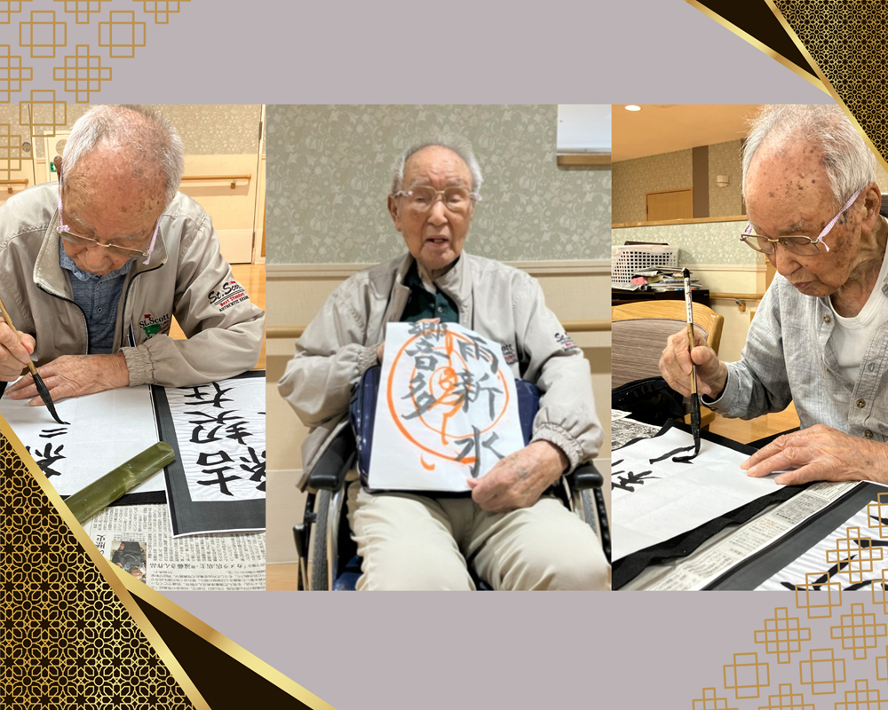 他のご入居者さまと一緒に、川柳の会に参加されたり、書道教室にも積極的に参加され、楽しまれています 。