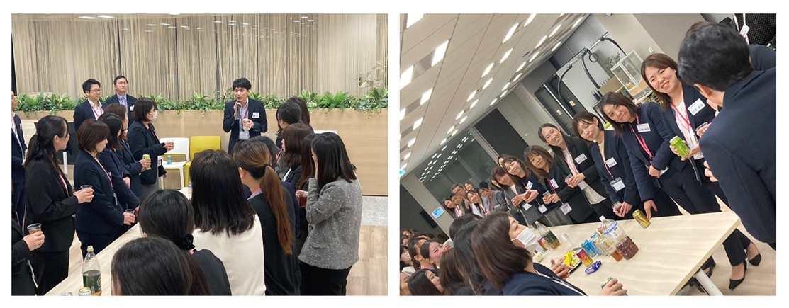 SOMPOケアの研修ではSOMPOひまわり生命CHROの野田美智子さんが、SOMPOひまわり生命の研修では、SOMPOケアCHROの吉岡さんがお話しされました。