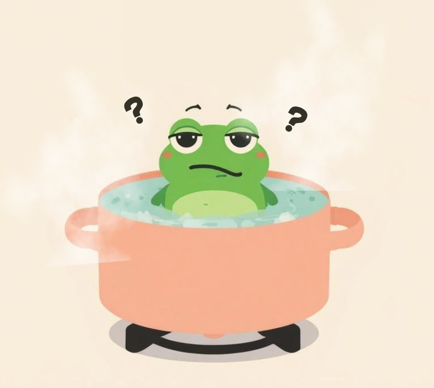 「カエルをいきなり熱湯に入れると驚いて逃げ出す。しかし冷たい水に入れてから徐々に沸騰させていくと、危険を察知できずにそのまま茹でられてしまう」