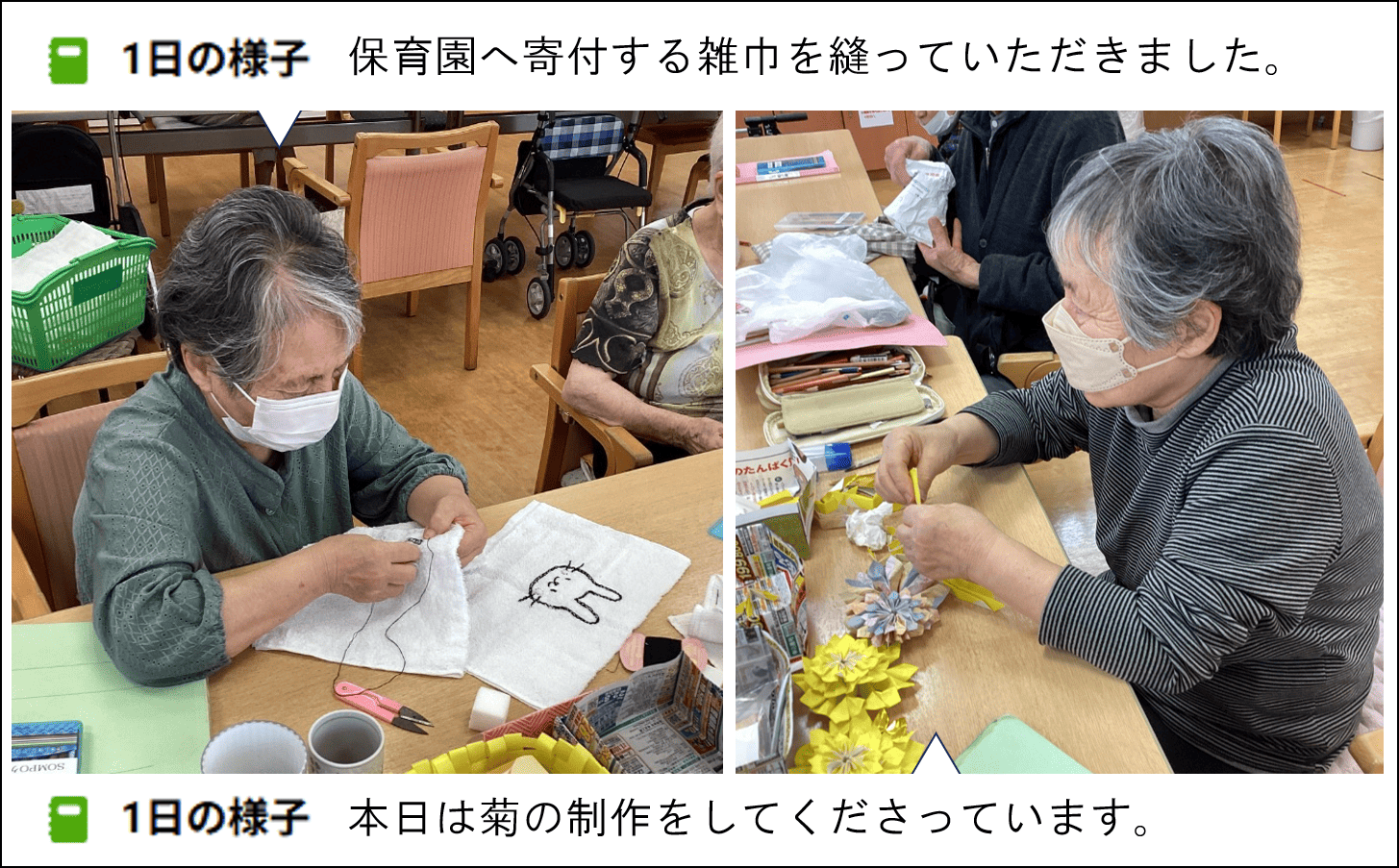 要介護度が下がったIさまが『じゃあその一日はお手伝いで来ようかしら』と語ったように、将来的にはボランティアとして裁縫の先生になるなど、事業所自体が地域資源になる可能性も秘めています。ご利用者さまの「生きる楽しみ」を育む川越霞ヶ関デイサービス。