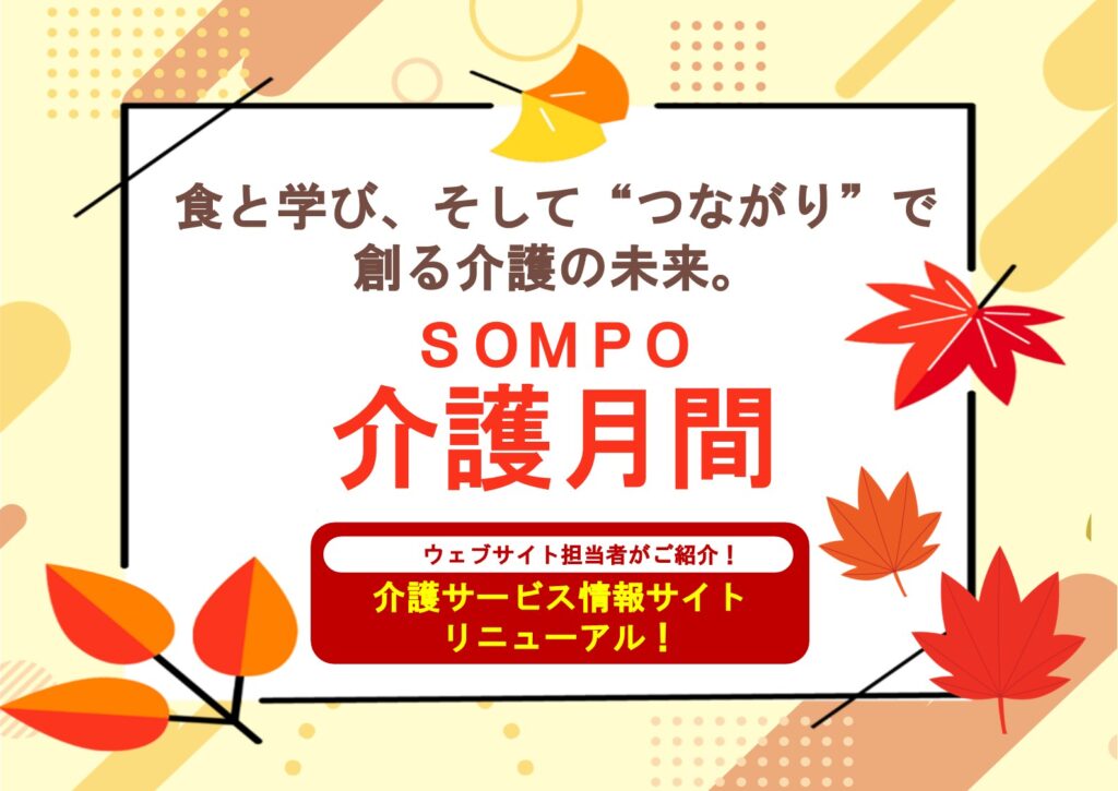介護情報サービス NEW イベント 2025.12.12 SOMPO介護月間「介護サービス情報サイトリニューアル!」編 11月は、私たちSOMPOケアが「SOMPO介護月間」として、介護について一緒に考える特別な1ヶ月となりました。 今年は、「食と学び、そして“つ・・・ ウェブサイト介護情報サービス社員の想い介護の日SOMPO介護月間 1 4 view 1 / 11