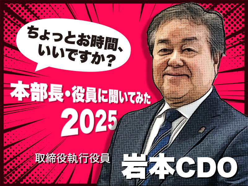 CDO NEW 特集 2025.12.05 取締役執行役員CDO 岩本さんインタビュー!・・・「ちょっとお時間いいですか? 本部長・役員に聞いてみた2025」 部長・役員の皆さんへのインタビュー特集 ♦♦♦ 「ちょっとお時間いいですか? 本部長・役員に聞いてみた・・・ 経営企画部インタビュー記事役員の想いCDO 3 29 view 1 / 11
